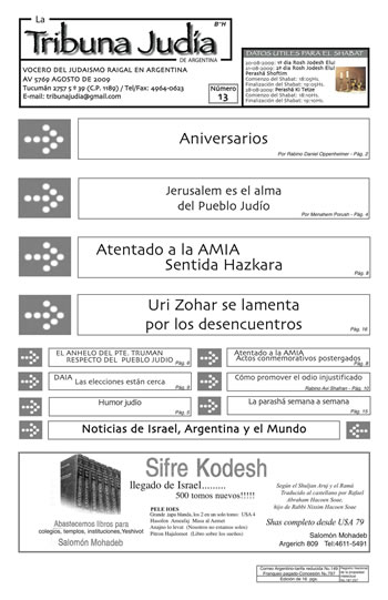 y Administración: Lavalle 2168 Of. 37 ( C.P. 1051) de 15.30 a 18.00 Hs. Tribuna Judía Aparece