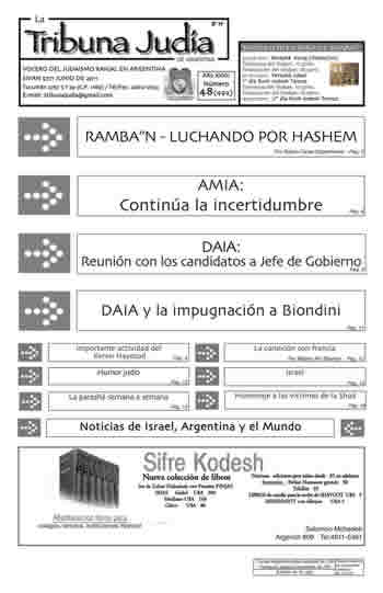 y Administración: Lavalle 2168 Of. 37 ( C.P. 1051) de 15.30 a 18.00 Hs. Tribuna Judía Aparece
